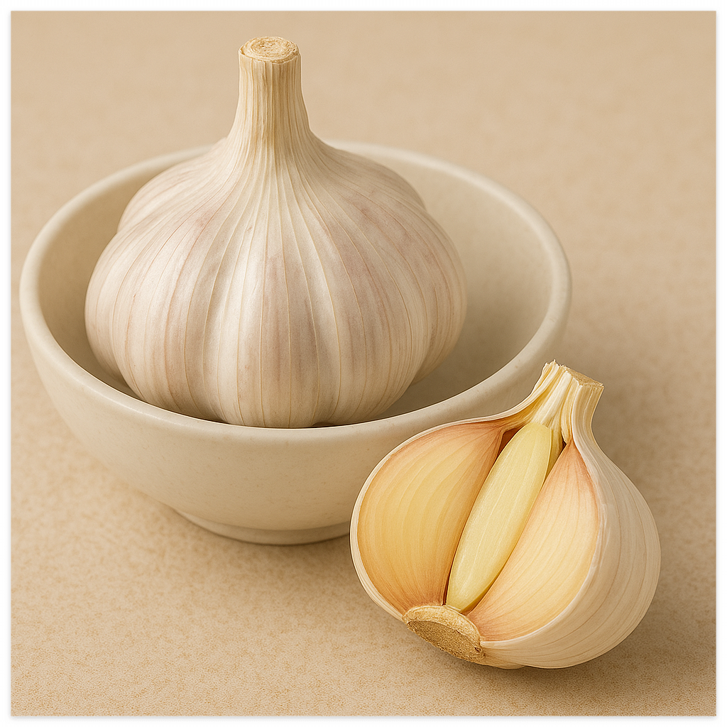 마늘은 알리신(Allicin)이라는 황화합물을 포함하고 있으며, 이는 강력한 항산화·항균·항염 효과를 나타냅니다.